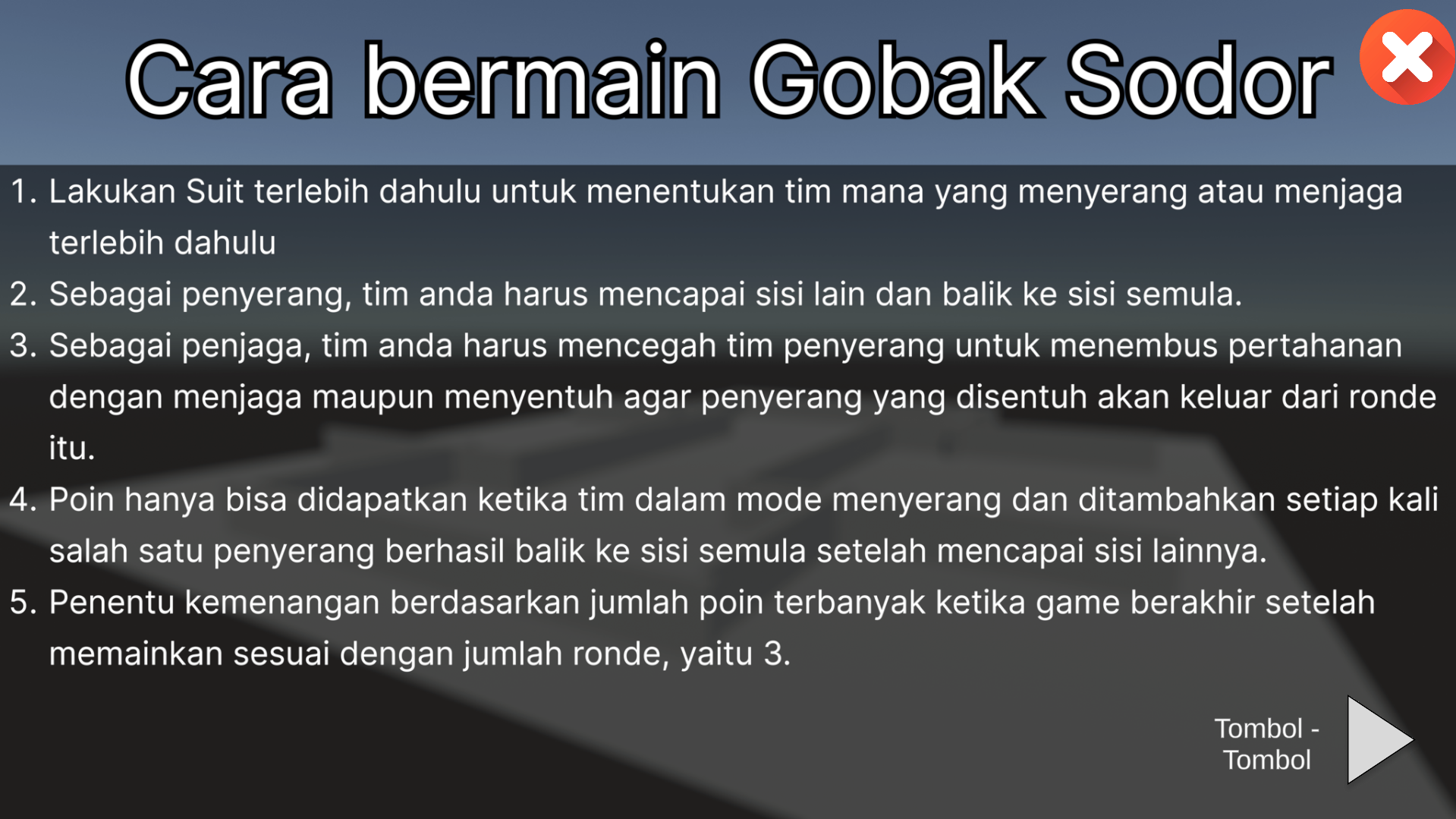 Gobak Sodor is a traditional Indonesia game, where a team need to earn points by going through the defense of other team twice! The team with the most point at the end of the game, wins the game!